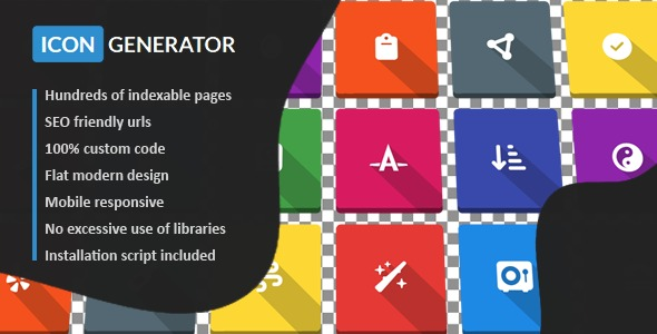 Icon Generator has hundreds of individual icon pages what can be found and indexed by search engines. This script allows people to customize icons from the FontAwesome icon set and download them in PNG format to use in their websites, applications and projects. All icons have their views and download statistics saved so icons can be sorted by views, downloads and popular on the index page. This script is lightweight and doesn’t require you to create a database