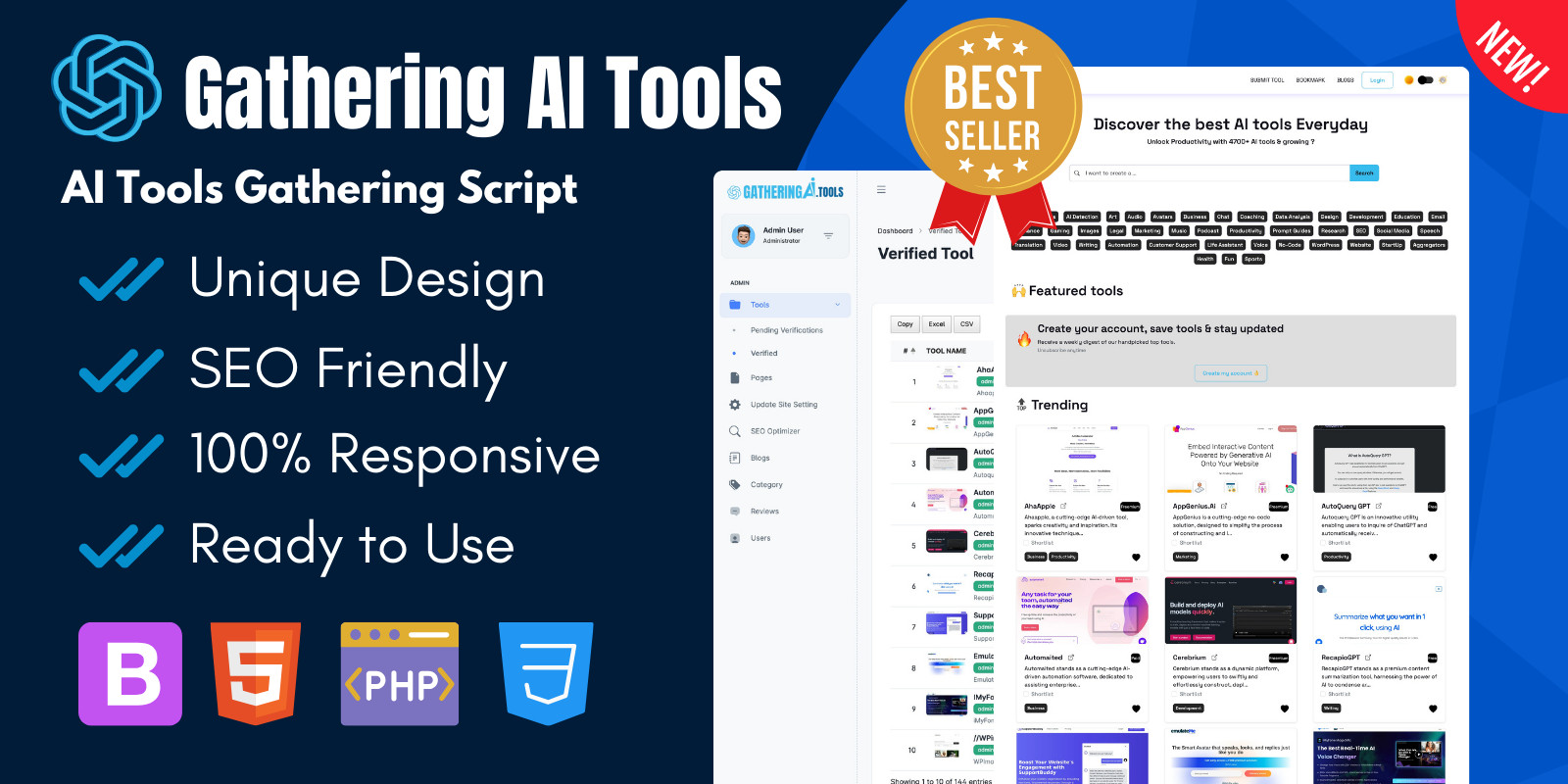 Gathering AI Tools is an AI tools directory script that has been built on the latest PHP version and is simple to install on the server. It comes with the proper documentation and an installation video.