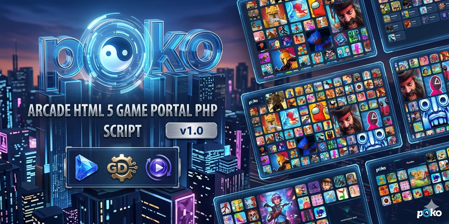 The finest HTML 5 Games Portal/CMS with a ton of incredible features and functionalities is the Poko PHP Script. This script is the ideal choice for anyone wishing to build a gorgeous gaming website because it has more than 1200 games and many features.